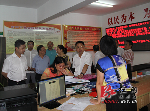 红网珠晖站8月19日讯(分站记者 唐兰荣)“在这里申请医疗救助,多久能办得下来?”一句关切的问候,让正在冶金街道社会救助管理站填表办事的一位大姐抬起了头。珠晖区民政系统的工作人员正在细致、认真地为来访领导解答当前该区实施的各项社会救助政策及落实情况。这是8月18日上午,湖南省政府副秘书长王光明、省民政厅社会救助局副局长刘勇等率督查组来珠晖督查社会救助专项治理情况的缩影。市人民政府副市长陈竞,珠晖区委书记刘诗真,珠晖区委副书记、区长陈礼洋,副区长陶朝晖等陪同督查。