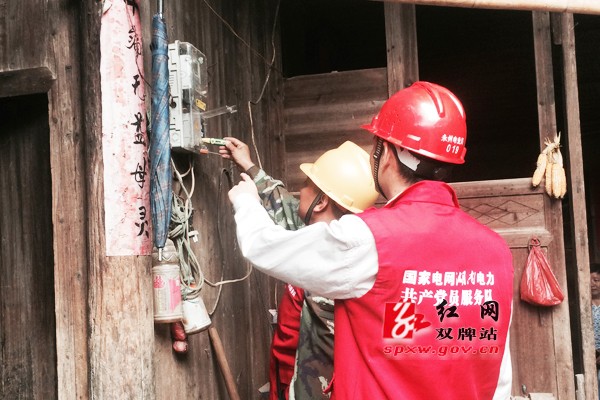 图:服务队队员为老人检查用电设备 。