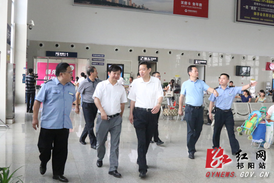 红网祁阳站9月2日讯(分站记者 刘志军)9月1日,广铁集团党委副书记李新民一行来祁阳火车站检查指导铁路安全生产工作。县委书记魏湘江、副县长唐安宝等陪同。“工作人员要各司其职,切实履行好职责,应对好各项突发事件,扎实做好安全生产工作。”在祁阳火车站,李新民一行现场检查了候车室、售票厅、检票口、行李寄存处和信号楼等人员密集场所和要害部位的安全状况,了解了各项安全生产措施落实情况。李新民强调,要克服松懈、侥幸心理,进一步做好员工的安全教育工作,加大隐患排查力度,消除站内安全管理的盲区死角,接送好每一位旅客。