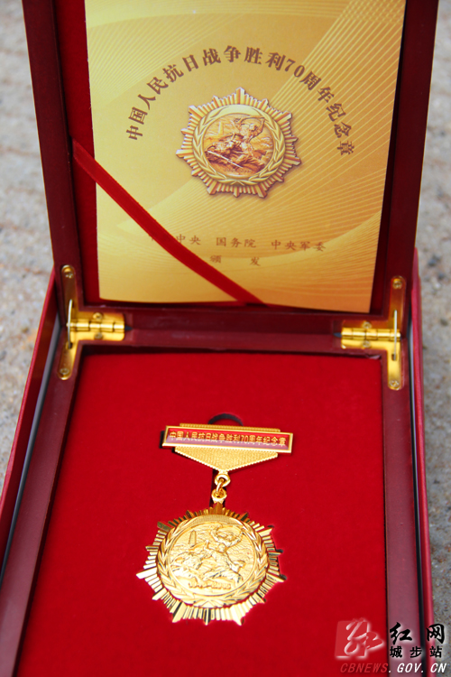 图为由中共中央、国务院、中央军委为健在的抗战老战士颁发的“中国人民抗日战争胜利70周年纪念章”。肖丁勤摄