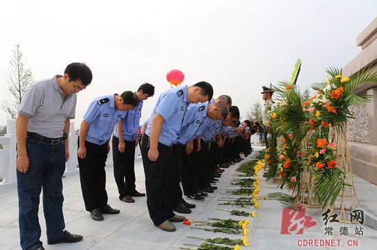 上午9点30分左右,桃源县烈士墓园广场上气氛凝重,9名高龄的抗日老兵坐在广场的第一排、后排依次站着部分烈士家属、公安干警、学生代表队学生家长等近1000名代表,虔诚地望着高耸的烈士纪念碑,神情十分肃穆。