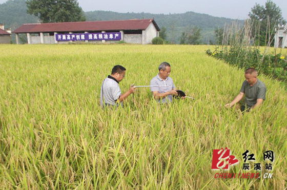 红网辰溪站9月10日讯(通讯员 宋杰起 谢申国)9月9日,笔者从辰溪县农业局获悉,根据省农委粮油处2015年中稻万亩片测产验收方案要求,近日,由省农委粮油处选派的5人测产验收组,对辰溪中稻万亩片进行了测产验收。测产结果显示,辰溪万亩中稻高产创建示范片平均单产为607.3公斤,较示范片上年亩增101.8公斤,增产20.1%,丰收情况喜人。