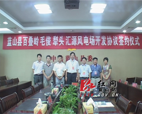 蓝山县属于湖南省风能资源较丰富的区域,具备良好的开发价值,全县实际风能资源储量可达95万千瓦以上。目前,全县已安装测风塔18座,开展了为期一年的测风工作,大桥、塔峰镇、四海坪、白毛坪、浆洞、盘洞口、汇源、犁头、詹家坊等9个风电场已列入湖南省“十二五”风资源规划,完成59万千万消纳规划。三一重型能源装备有限公司此次投资开发的是百叠岭、毛俊风电场,风电场装机规模约为10万千瓦。湖南湘投国际投资有限公司投资开发的是汇源、犁头风电场,风电场装机规模约10万千瓦。四个风电场今年10月份开始测风,预计2017年6月开工建设。