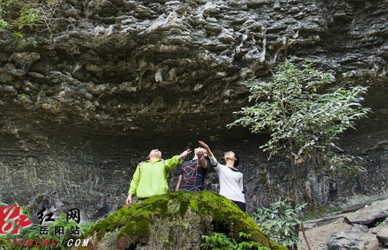 穿越“金碗水”景区是这次山水运动节的山水求缘板块,据了解,“金碗水”景区可分为四大板块:第一板块为八部大王石城与溪谷风光板块。第二板块为核心景区板块,主要包括天生桥、九龙壁、一线天、石滑槽与金碗水等主要景观,天生桥40米的跨度,是偏的,所以又叫偏偏桥,天生桥的断口上有各种钟乳石形成了九条龙的图案;石滑槽长300米,有少量水流,斜的,徒步走特有感觉;金碗水可以说极其神秘了,10多米的断崖上滴水,在地面形成一个乳房状的钟乳石,钟乳石中有个碗状的孔,滴水一般都落在钟乳石的外面,站在边上喊“沅陵,沅陵,有缘来临!”水就会滴到碗里去。附近村寨男女谈恋爱常常会被村里老人要求来一起喊水,喊不进去不准继续交往。第三板块是山顶义胆崖板块,山顶上可以一眼看到大坝与栖凤湖。第四板块是金猴守棺板块。