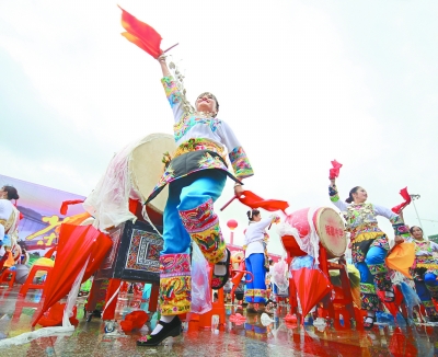开幕式现场:17支鼓队 1400余人鸣响鼓点