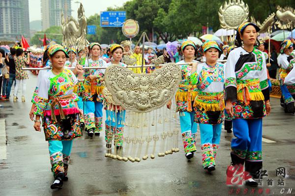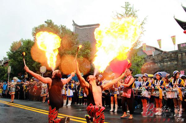 除乾州春会外,巡演方队还包括独具湘西地方特色的苗族鼓舞、土家族毛古斯舞、辰河高腔、酉水号子、踏虎凿花等国家级非物质文化遗产。