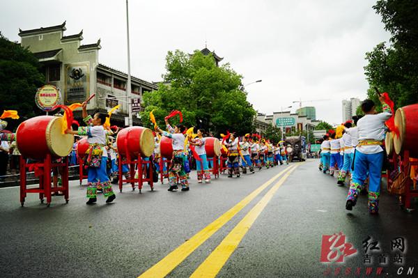红网吉首站9月20日讯(分站记者 肖庆宾 于茁 张清)9月19日上午,“吉周吉年”(吉周吉年,苗语:我们一起狂欢吧!)鼓文化巡游活动紧接2015吉首鼓文化节开幕式后精彩上演,独具特色的表演吸引了数万名本地市民和外来游客目光。