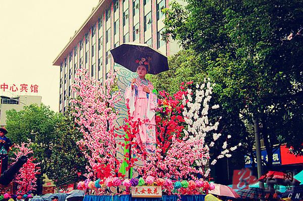 两位小“天女”稳稳地站在彩架上微笑散花,旁边的人们一路逐春,幸福而热烈的接纳着、哄抢,抢到的没抢到的无不喜笑颜开……这正是有着数百年历史、湖南省级非物质文化遗产——乾州春会。湘西人在春节期间,为祈求来年风调雨顺、五谷丰登,时常要举行春会活动。而乾州的“春”则以其悠久的历史、宏大的规模和精巧的扎工、俊美的扮相,深受广大群众喜爱,被认为是最具湘西地方特色的民间艺术之一。世人曾以“凤凰的兵、乾州的春、浦市的龙船、泸溪的灯”来概括湘西,足见其影响深远。