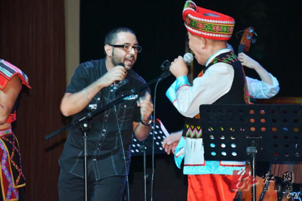 法国艺术家与土家族歌手田隆信(国家级非物质文化遗产传承人)互动“飙歌”