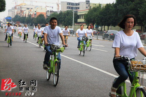 骑行队员们沿着文源路、郭亮中路、旺旺中路等路段有序骑行,宣传绿色出行的意义