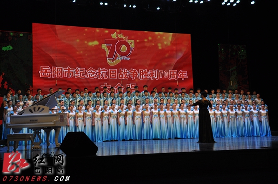 红网岳阳站9月26日讯(分站记者 宁平)飞扬的歌声,吟唱难忘的岁月,凝聚心底不变的情结;熟悉的旋律,演绎时代的激越,回荡历史不改的真情。为纪念中国抗战胜利暨世界反法西斯战争胜利70周年,9月25日晚,在岳阳市文化艺术会展中心,由市委、市政府主办,市委宣传部、市文广新局、市文联和市广播电台承办的“岳阳市纪念抗日战争胜利70周年大合唱”隆重举行。