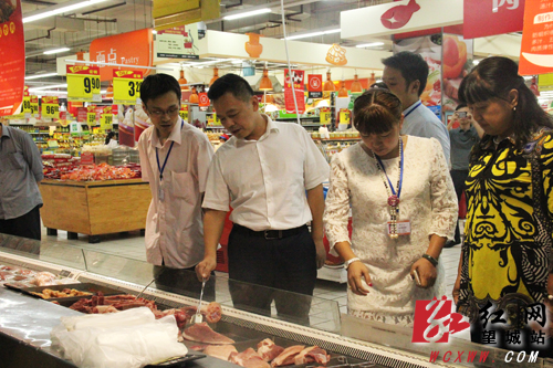 红网望城站9月30日讯(分站记者 解巾英)为确保国庆节期间食品安全,有效预防各类食品安全事故的发生,9月29日,望城区开展了国庆节前食品安全专项检查。检查组一行详细检查了家润多超市、望城一中学生食堂、东华士乳业、东马社区北津学院后潲水油黑窝点等地,对超市摆放的食品是否过期,厨房人员是否有健康证,熟食和原料是否分开摆放等方面进行了仔细查验。