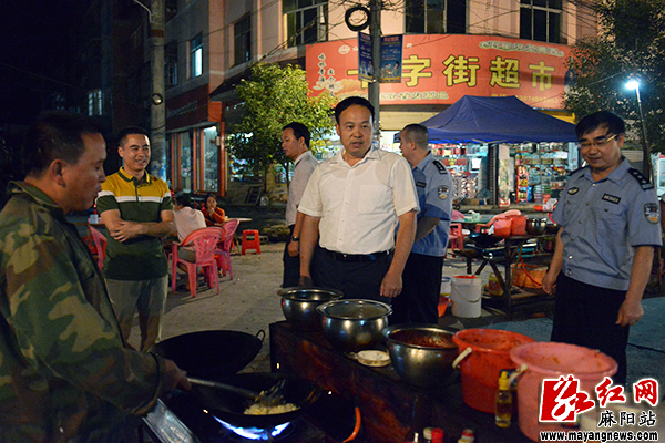 在锦和镇夜巡,询问夜摊老板了解集镇治安情况