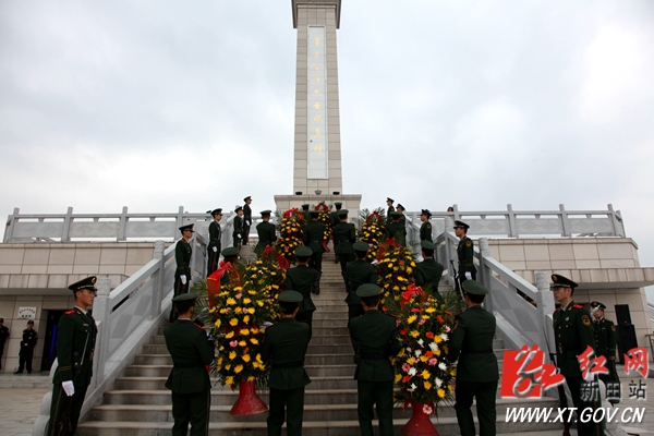 9时整,县委副书记唐富荣宣布:“新田县向烈士敬献花篮仪式开始!”仪式广场上响起了雄壮的国歌声,参加祭奠的人员全体肃立,低首默哀,追思革命先烈。