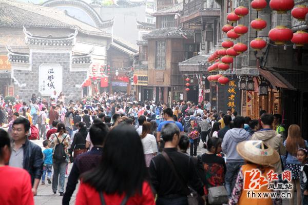 秋高气爽。在高速路凤凰出口,笔者看到,“川A”、“桂K”、“赣C”等外地车辆络绎不绝;在城北游客服务中心,说着普通话和不同地区方言的游客在咨询旅游路线;在凤凰古城里,成群结队的游客在各色小旗帜的率领下,进出各个景点参观;在北门码头的“沱江泛舟”景点,游客排着长长的队伍在等待检票上船……景区景点秩序井然,游客接待工作有条不紊。县旅游部门工作人员预测,黄金周首日,到达的多为中短途游客,随着长途的游客到来,未来几天内,来凤凰的旅游将会更多。