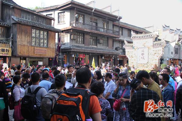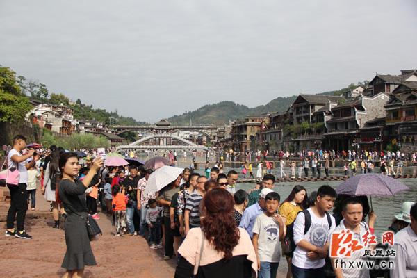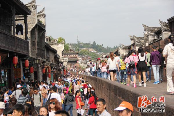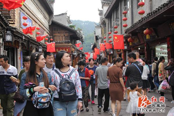 红网凤凰站10月3日讯(分站记者 吴文星)10月3日,“十一”国庆长假第3天。记者走进凤凰古城核心景区看到,古色古香的大街小巷游人熙熙攘攘,熊希龄故居、古城博物馆、沈从文故居、北门沱江泛舟等核心景点客流如潮,秩序井然,凤凰古城迎来“十一”黄金周的首轮旅游高峰。