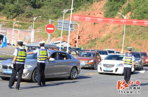 (自驾游车辆陆续抵达凤凰,交警耐心分流停放)