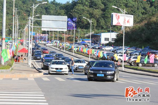 红网凤凰站10月3日讯(分站记者 龙炳忠 麻煜新) 10月2日下午,记者在凤凰县城北旅游专用通道隧道口看到,许多外地自驾游车辆排起了长龙,正从隧道口驶出,“三隧一桥”自驾游服务中心前,凤凰交警正耐心引导车辆停放,临时停车场里,车辆整齐停放,车位所剩无几。经过约两天的行驶,许多自驾游车辆陆续抵达凤凰。随后,记者先后来到凤凰城区景区,看到城内主要干道上,每隔10来米就有交警在值守,自驾车辆及旅游大巴皆被分流停放在指定的停车场,为了方便游客进出古城,凤凰县安排许多车辆接驳游客,道路交通状况良好;古城核心景区各个入口处,古城公司工作人员轻言细语,礼貌待客;古城巷道里,人潮如水;“凤凰城”等标志性建筑旁,游客们轮流上前拍照留念;沈从文故居、沱江泛舟等景点,游客排队检票进入参观……高速出口、游客服务中心、南华门、文化广场、老政府门口和古城道门口等人流密集的地方,除了公安执法人员值守外,还设有旅游咨询点、茶水饮用点、医疗服务点、“青年志愿者”服务点、“12315”投诉点、公共厕所,免费为游客提供各种服务,确保游客游得放心、舒心、开心,凤凰县城区景区游旅秩序井然。