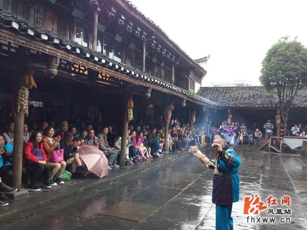 红网凤凰站10月6日讯(分站记者 吴文星 通讯员 王成军)“走进苗族博物馆,就像品读一部苗族简史,看了一帧苗族社会缩影,太值得参观了!”10月6日,“十一”黄金周第六天,凤凰县山江苗族博物馆游人熙熙攘攘。在景点工作人员的热情服务下,游客们有序参观苗族历史文物,看民俗技艺表演,品苗家纯酿米酒,学唱苗歌试跳苗族舞蹈,流连忘返,如痴如醉。