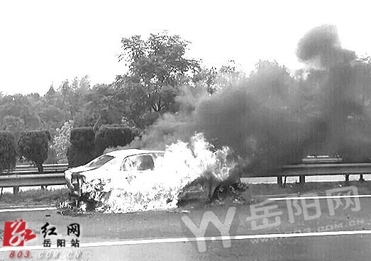 红网岳阳站10月9日讯(分站记者 赵芸 通讯员 陈汐)10月6日下午15许,京港澳高速岳阳段1401KM往南方向发生一起交通事故,三辆轿车追尾相撞,造成一辆广东牌照的大众牌小轿车起火燃烧。接到报警后,湖南省高警局岳阳支队汨罗大队民警火速赶到现场进行处置。到达事故现场后,民警发现火势正处于猛烈燃烧阶段,大火吞噬着其中一辆小轿车,所幸车辆驾驶员早已逃出车外。高速交警立即对事故现场实行临时交通管制,防止二次事故发生。