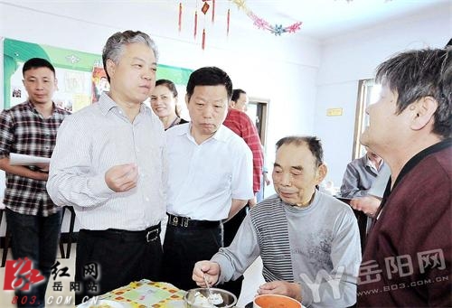市社会福利院现有工作人员156人,床位390张。该院新建的岳阳市老年护理中心大楼项目已进入验收阶段,投用后将新增床位500张。“祝大家节日快乐,身体健康,天天开心。”走进福利院食堂,盛荣华与正在用餐的老人们亲切交谈,了解他们在这里的生活情况,嘱咐工作人员悉心照料好老人们的生活起居,让他们在这里安度幸福晚年。察看新建护理中心项目进展后,盛荣华指出,重视和加强老龄工作,关心关爱老年人,是全社会义不容辞的责任,要深怀爱老之心、多办利老之事,统筹加强城乡老年工作,营造更加浓厚的敬老爱老养老助老氛围,让老年人共享经济社会发展成果。