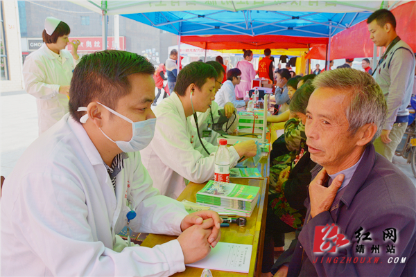 红网靖州站10月21日讯(分站记者 陈俊名 通讯员 颜丫丫) 农历九月初九是我国的传统节日重阳节。21日上午,怀化市第二人民医院靖州医院联合团靖州县委组织志愿者在靖天国际售楼部门口(肯德基对面)开展重阳节“关爱老人送您健康”义诊、义卖、义剪活动,吸引众多市民前来。经过近一个小时的准备工作,9点30分,活动正式开始。来自市二医院靖州医院妇科、骨外科、感染科、五官科等科室在内的数名专家现场免费为老人提供咨询、体检、会诊,并为他们进行常见病、多发病的健康普查,建立系统的健康档案,让他们享受持续、便捷的医疗服务。