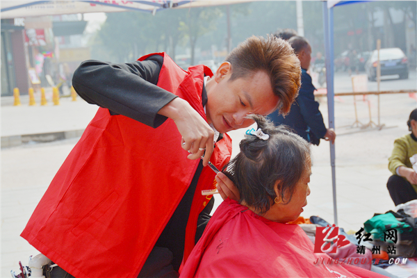 (靖州开展“九九重阳节”义诊、义卖、义剪活动引市民关注。) 陈俊名 摄