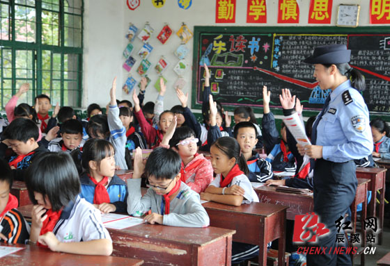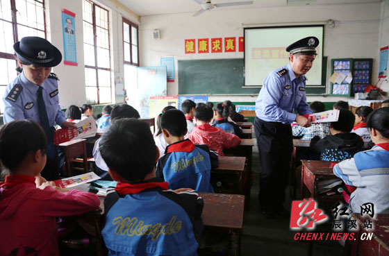 红网辰溪站10月21日讯(通讯员 孙海波)“有哪位同学告诉我,新型毒品有哪些危害?”民警一提出问题,同学们都高高的举起双手,争选恐后的要求答题:“我知道!我知道……”这是10月20日,辰溪县公安民警在辰溪县明德小学开展禁毒宣传中的一幕。当天,民警们带着宣传展板、宣传资料走进明德小学。活动中,结合学生正处于生理、心理发育时期,好奇心强、辨别是非能力弱、抵制毒品侵袭心理防线脆弱的特点,民警以真实的事例和丰富的图片感染在校学生,并针对如何识别新型毒品、如何预防青少年吸食毒品等问题,进行了耐心讲解。通过学习,同学们对禁毒知识已都有了一定了解,在接来的有奖问答环节,课堂氛围十分热烈,同学们答题十分踊跃。