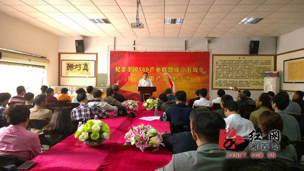 红网湘西站10月22日讯(分站记者 孔黎明)10月21日上午,全国SOD产业联盟成立五周年暨SOD应用产品研讨会在湘西州边城生物公司召开。近50位国内著名的SOD专家和SOD产业联盟的精英齐聚吉首河溪,共商SOD的产业化。州人大常委会副主任刘小刚出席会议并讲话。SOD是一种源于生命体的活性物质,能消除生物体在新陈代谢过程中产生的有害物质。对人体不断地补充SOD具有抗衰老的特殊效果。人类研究SOD始于上世纪三十年代,一九六八年美国科学家迈克德从牛的红细胞提出名为超氧化物歧化酶,SOD神秘面纱才被揭开,但当时只能存活三十分钟。由于SOD提取的量非常小,在市场上其价格是黄金价格的数百倍。SOD面世后主要是西方国家一些领导人和名流注射或服用,用于延缓衰老;在医学临床上目前国外主要用于免疫系统的治疗,和癌症放化疗期间的配合用药。
