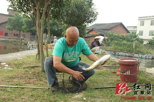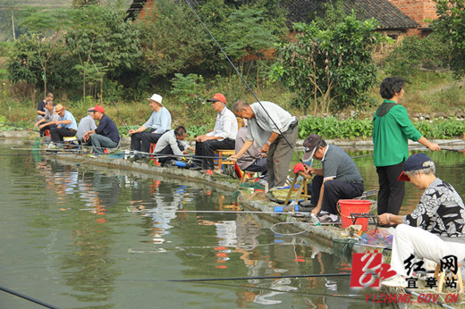 红网宜章站10月27日讯(分站记者 吴章军 通讯员 周斌)10月26日,宜章县2015年老年人钓鱼比赛在玉溪镇寿福村白水岱鱼场举行,140余名老年钓鱼爱好者参与比赛。经过3个小时的激烈角逐,最终,罗建民老人技压群雄,以18.6斤的总成绩获得比赛一等奖。此次比赛由县体育局、钓鱼协会联合主办,秉着“友谊第一,比赛第二”的原则,活动吸引了不少钓鱼爱好者前来观看。早上8时30分,在白水岱钓鱼场,全体参赛者在工作人员的安排下,有序地进入各自赛场区域,各就各位等待吹哨开始钓鱼。尽管当天气温很高,但难掩选手们的参赛热情。比赛现场一声令下,百竿齐发,参赛者专心投入,各显身手,挂饵、挥杆、抛线、入水、抄网、摘钩、抱鱼,忙得不亦乐乎,场面热火朝天。他们时而交流经验、切磋技艺,时而会心地微笑,尽情享受着垂钓乐趣,展现自己的垂钓技术。