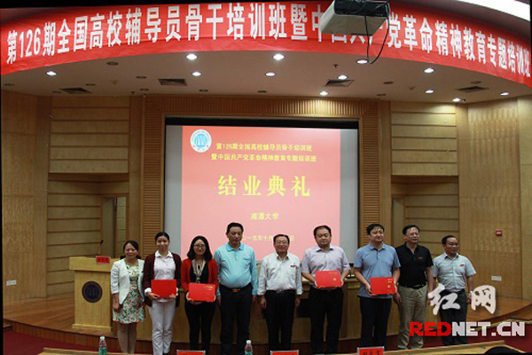 红网湘潭10月29日讯 (通讯员 张玉霞 刘雪) 10月27日下午,第126期全国高校辅导员骨干培训班暨中国共产党革命精神教育专题培训班结业典礼在湘潭大学图书馆报告厅举行。湘潭大学副校长刘建平出席。全国121名高校辅导员在为期3天的培训中,聆听6场专题报告会,进行了紧张而充实的学习,顺利结业。