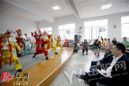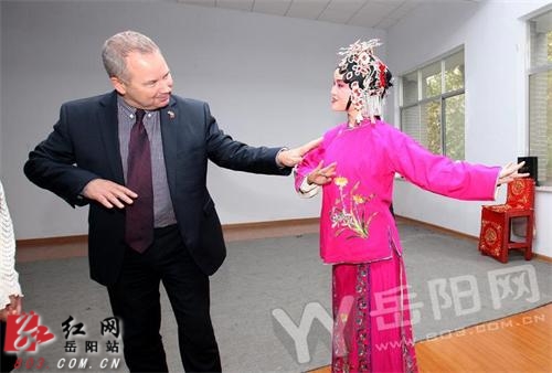 红网岳阳站10月29日讯(分站记者 王志)英国萨默塞特郡合作办主任“阿德里安·艾殊”先生29日率考察组来到岳阳巴陵戏传承研究院观摩地方戏曲。在岳阳巴陵戏传承研究院排练厅,英国客人观看了岳阳艺术工作者表演的巴陵戏《天宫赐福》《打饼》、器乐合奏《苗岭的早晨》、花鼓小戏《刘海砍樵》等节目。巴陵戏已有近400年历史,传统剧目多取材于历史演义和话本,共计540多个。2006年5月,巴陵戏经国务院批准列入第一批国家级非物质文化遗产名录。近年来,不断有新的剧目问世并走出国门,2014年参加了土库曼斯坦阿瓦扎国际音乐民俗文化艺术节。“阿德里安·艾殊”说,岳阳历史文化底蕴深厚,既有巴陵戏、花鼓戏之类的传统经典艺术,又有广场舞之类的群众文化普及,英国每年都要举办大型民间音乐节,希望两地加强旅游、文化、艺术、教育等方面的合作交流,共同促进文化繁荣。