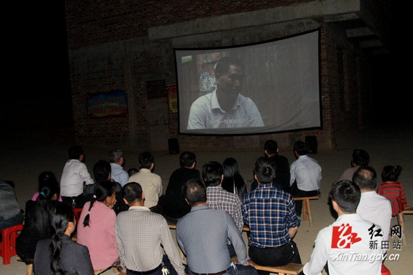 新田县委常委、组织部长、统战部长彭俊卿,县文广新局、广播电视台、大坪塘镇负责人等观看影片。