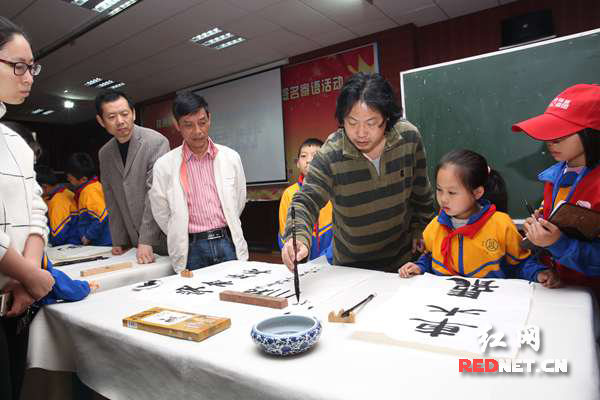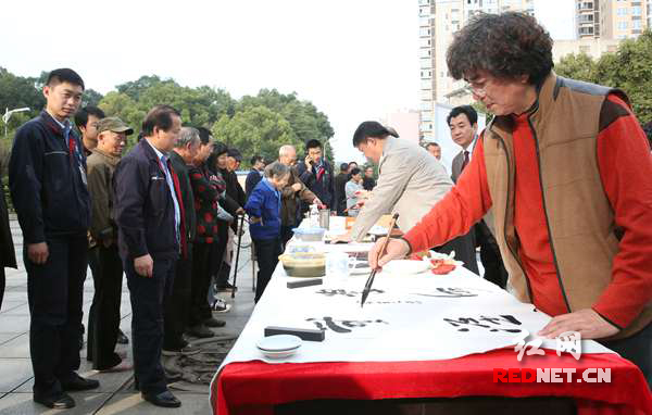 红网株洲11月3日讯(分站记者 青琪 通讯员 陈建智 尹智毅) 11月2日、3日,株洲市总工会组织一批书画名家走进南方公司、泰山学校,给职工和学生送去书画作品。