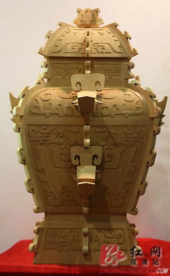杨帆、杨佳、杨屹楼、姚中发等创作的荣获金奖的作品翻簧竹刻《方罍》。