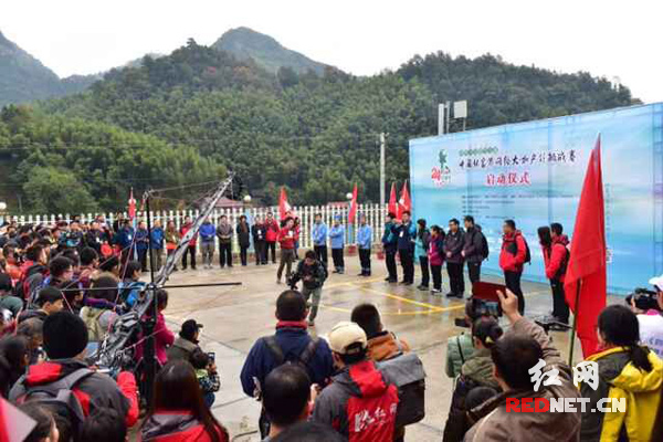 红网慈利11月7日讯(时刻新闻记者 黎鑫 摄影 李长宏)冰冷的秋雨浇灭不了火热的激情!今天上午9:37,《张家界24小时》第二季在慈利县老棚村村部正式开启,来自全国的7名网络大咖与2名当地教师组成紫、红、绿三个小组,挑战穿越慈利48寨,并以此募集爱心资金,帮助当地贫困留守儿童。参加《张家界24小时》第二季的网络大咖来自各个领域,包括中国电视体育节目最佳主持人沙桐、央视少儿频道节目主持人霍小雷、上海东方卫视主持人骆新、中国最火军事节目《军情解码》主持人罗旭、凤凰卫视双语主持人王峰、电视湘军新生代男主持王乔、著名情感畅销书作家苏芩,同时,慈利县当地的两名优秀教师黎揽月和林芳也参与其中共同竞赛。