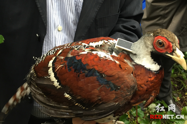 待放生的白颈长尾雉身上佩戴了卫星定位追踪器,通过接收信号可获得其活动轨迹、存活状况及与环境的融入情况、遭受危害情况等多种数据