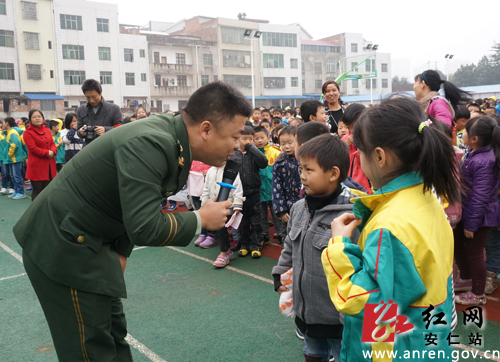 演练结束后,县消防大队官兵向学生讲解消防知识