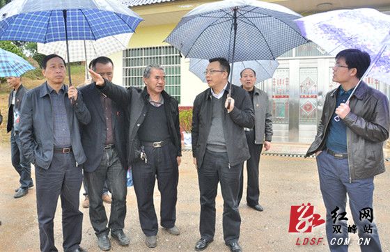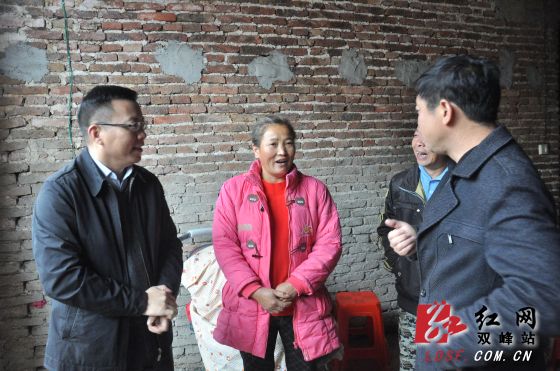 双峰县委书记吴德华(左一)一行与老刘(左二)交流。