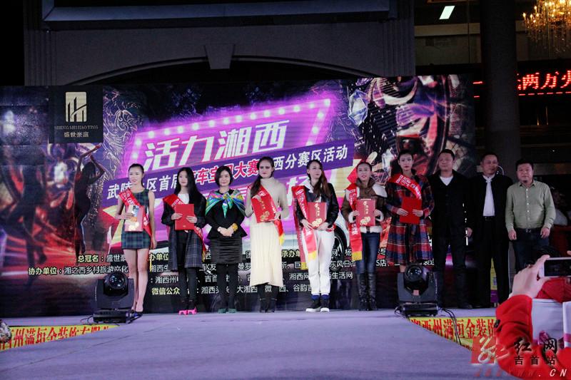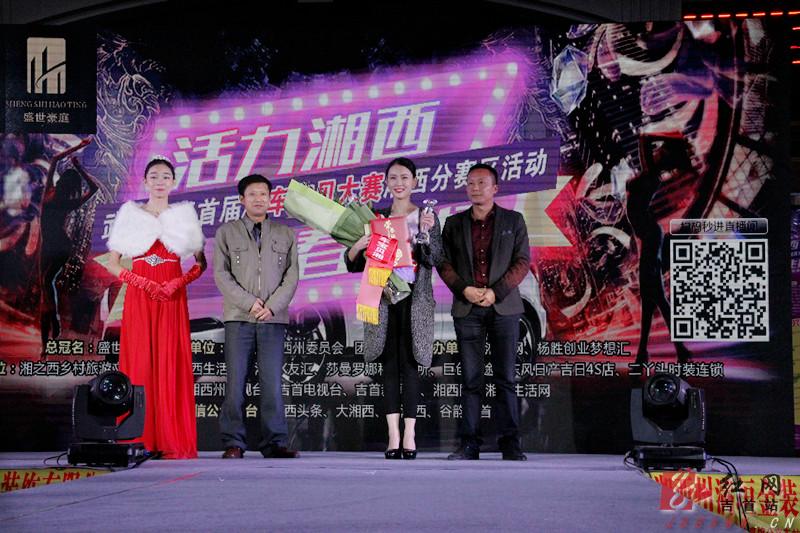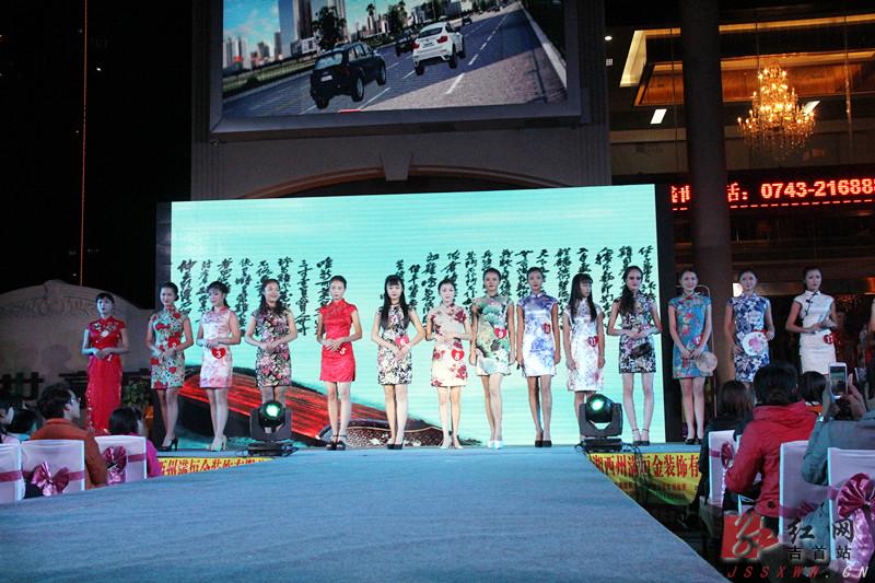 红网吉首站11月17日讯(分站记者 汤舒丹)11月15日,“豪庭之夜”武陵片区首届汽车宝贝大赛湘西分赛区在盛世豪庭售楼中心举行。27位参赛选手在舞台上尽情展示各自魅力。晚上7时,活动正式开始。通过旗袍秀、时装秀、礼服秀等几轮比拼,最终,9号选手戴陈茜获得冠军,21号选手黄惠婷、15号选手刘璐分获亚、季军。2号选手李枞获得评委特别推荐奖。