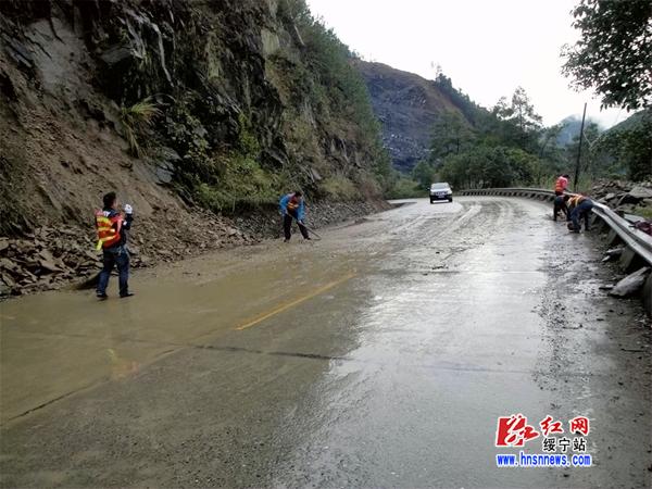 红网绥宁站11月18日讯(通讯员 王伟琪 王勇)进入11月份,绥宁县出现连续降雨,局部地段降下大暴雨,导致境内S221线、X082线、X088线等多条公路受损严重,绥宁县公路部门积极应对,全力以赴抗冬汛保畅通。此轮冬季强降雨一度造成县道X088线交通中断,灾情发生后,绥宁县公路局立即启动冬汛应急抢险预案,及时组织了32人的应急抢险队,调集铲车4台、运输机械8台、巡逻车4台,奔赴受灾路段。抢险队一到受灾现场,就立即在公路上设置安全标志标牌,疏导群众,清除倒木树枝,铲垮方,清除淤泥和碎石。通过应急抢险队的紧急抢修,中断路段已抢通,确保了绥宁县公路的安全畅通。