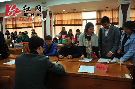 道县农村淘宝合伙人第一批招募会登记处火爆现场。