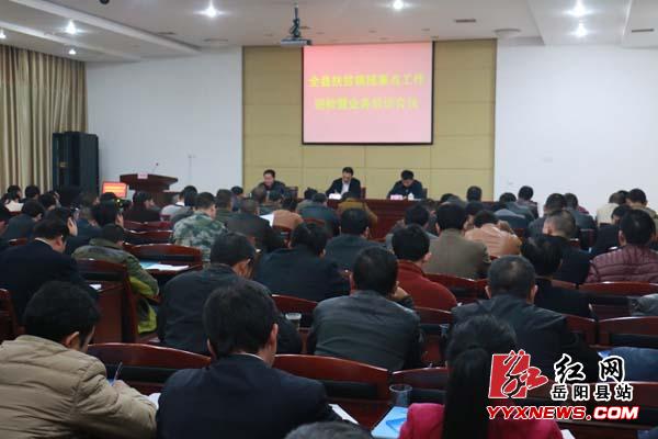红网岳阳县站11月20日讯(分站记者 陈嵬 通讯员 张阳)11月18日,岳阳县扶贫领域重点工作迎检暨业务培训会议召开。副县长易新岳出席会议并讲话。会议要求全体与会人员从思想上高度重视,行动上严格要求,认真抓好落实,积极做好各项迎检工作。11月23日至29日,省扶贫办将采取各市、州跨地区交叉督查的形式对全省各个县市区的扶贫领域重点工作任务进行督查。此次督查内容包括精准识贫、减贫计划落实情况,贫困村工作队派驻、贫困户结对帮扶责任人的落实情况,帮扶措施的到户到人情况等。督查将采取查阅资料、召开座谈会、走访贫困户等方式,对岳阳县扶贫工作进行实地督查,并进行评分排名。