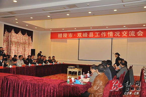 在两地的情况交流会上,杨维对醴陵市近年来经济社会发展所取得的成绩表示赞赏,认为醴陵经济社会发展定位准、思路好、保障优,特别是各企业争做世界一流品牌的先进发展理念和宝贵发展经验值得双峰学习借鉴。杨维说,两地情感相连、人文相近,县情、市情也有很多相似之处。希望今后在旅游、文化等各个领域进一步加强交流合作,实现共同发展,同时热忱欢迎兄弟县市来双传经送宝。通过交流学习,双峰将好好归纳总结,形成书面材料,共同探讨,为双峰经济社会的又好又快发展献计献策。