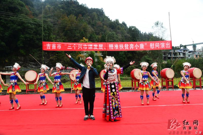 红网吉首站11月26日讯(通讯员 钱水友 杨选民 龙启军 黄伟)11月24日,“三个兴市谋发展精准扶贫奔小康”文化惠民扶贫文艺演出走进吉首市寨阳乡庄稼村,将丰富多彩的节目、“精准扶贫”政策知识送到群众家门口,鼓舞大家凝心聚力推动精准扶贫工作。演出现场,气氛热烈,节目内容丰富多彩,形式多样,既有反映民族特色的歌曲,又有反映时代气息的舞蹈,符合老百姓欣赏口味,让广大群众在家门口享受丰富多彩的文化生活,真正感受到文化发展的成果。