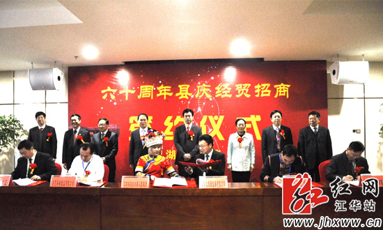红网江华站11月27日讯(通讯员 李敏)秀美瑶都盛邀宾朋,政企联姻共绘宏图。11月26日,江华瑶族自治县神州瑶都大酒店内人头攒动、气氛热烈,县庆60周年经贸招商签约仪式在这里隆重举行,来自四面八方的客商云集在这里,相约考察这片焕发勃勃生机的投资沃土。此次活动共成功签约重点项目6个,其中亿元以上项目4个,累计引资总额25亿元。湖南省副省长蔡振红,国家民委国家交流司司长俸兰,永州市委书记陈文浩、江华瑶族自治县委书记罗建华等中央、省、市、县领导,县直相关部门,以及特邀签约客商出席签约仪式。江华县委副书记黄志坚主持签约仪式。