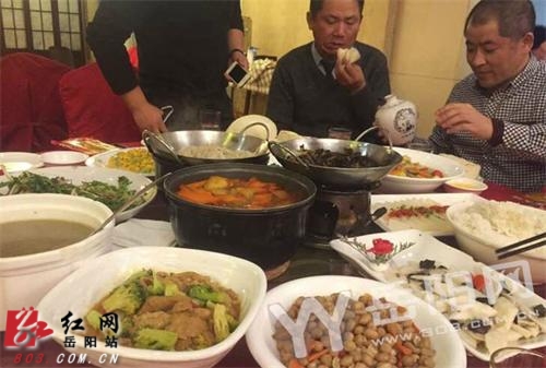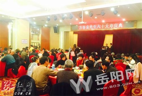 红网岳阳站11月27日讯(分站记者 赵芸 赵敏)清炒淮山、干锅菌类、土豆炖胡萝卜、西兰花炒油豆腐……11月26日,岳阳首例纯素食宴席在近300名宾客的期待中登场。为了推广素食文化和健康知识,市民方谷良先生和家人商量后,在泰和大酒店举行自己60岁大寿庆典,宴席上全部都是素菜。中午12点,方谷良的寿宴准时开席,一盘盘别致素菜轮番亮相,与平常的宴席相比,这场寿宴不一样:桌上没有一个荤菜,宾客除了亲友外,一半是素食者和传统文化爱好者。宴席的仪式也不一样,儿子在台下向台上双亲行跪拜礼,让在场宾客十分动容。
