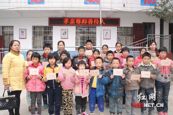 红网曾在今年1月14日以《湘乡:摸黑步行20里,山区留守儿童艰辛上学路》为题,报道了湘乡市中沙镇公略完小读四年级的留守女孩黄丹的坚强求学故事,感动了很多读者。同时,黄丹也被纳为叮当网络助学的关心对象。11月30日,和黄丹一样家境困难的20位山区小学生,领到了湘乡市民宗局爱心人士捐赠的爱心款。
