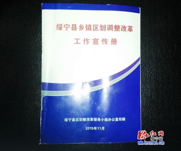 红网绥宁站12月1日讯(分站记者 向云峰)11月30日,笔者从绥宁县区划办了解到,最近由该办编印的2万本《乡镇区划调整改革工作宣传册》已经发放到全县涉及乡镇区划调整改革工作的15个乡镇干部群众手中。该宣传册的主体内容为“乡镇区划调整改革工作三十问”,是根据《中共湖南省委、湖南省人民政府关于开展乡镇区划调整改革工作的意见》、《湖南省乡镇区划调整改革工作方案》和《中共绥宁县委、绥宁县人民政府关于乡镇区划调整改革工作的意见》,就乡镇区划调整改革有关总体要求、政策解读、保障措施以及社会普遍关注的问题,以问答形式编撰而成。该宣传册内容全面,通俗易懂,成为广大干部群众了解全县乡镇区划调整改革工作的重要帮手。