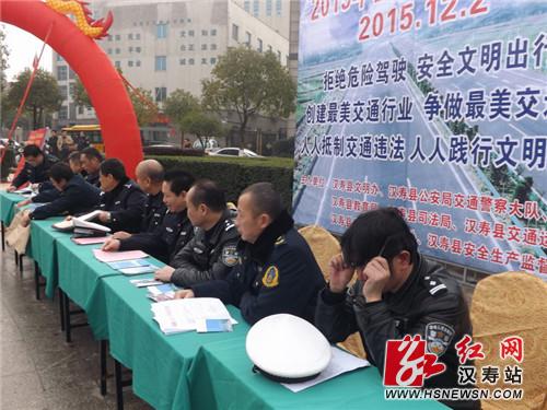 红网汉寿站12月2日讯(分站记者 彭忱颖 聂神佑)12月2日是“全国交通安全日”,上午,汉寿县交警大队与县文明办、教育局、司法局、交通运输局、运管处、安监局联合开展以“拒绝危险驾驶,安全文明出行”为主题的宣传活动。